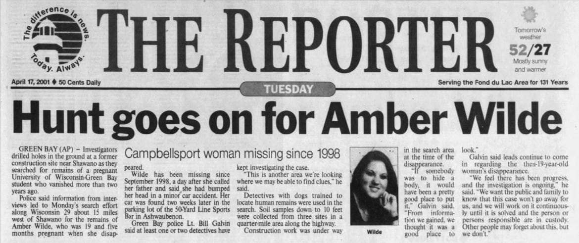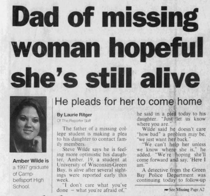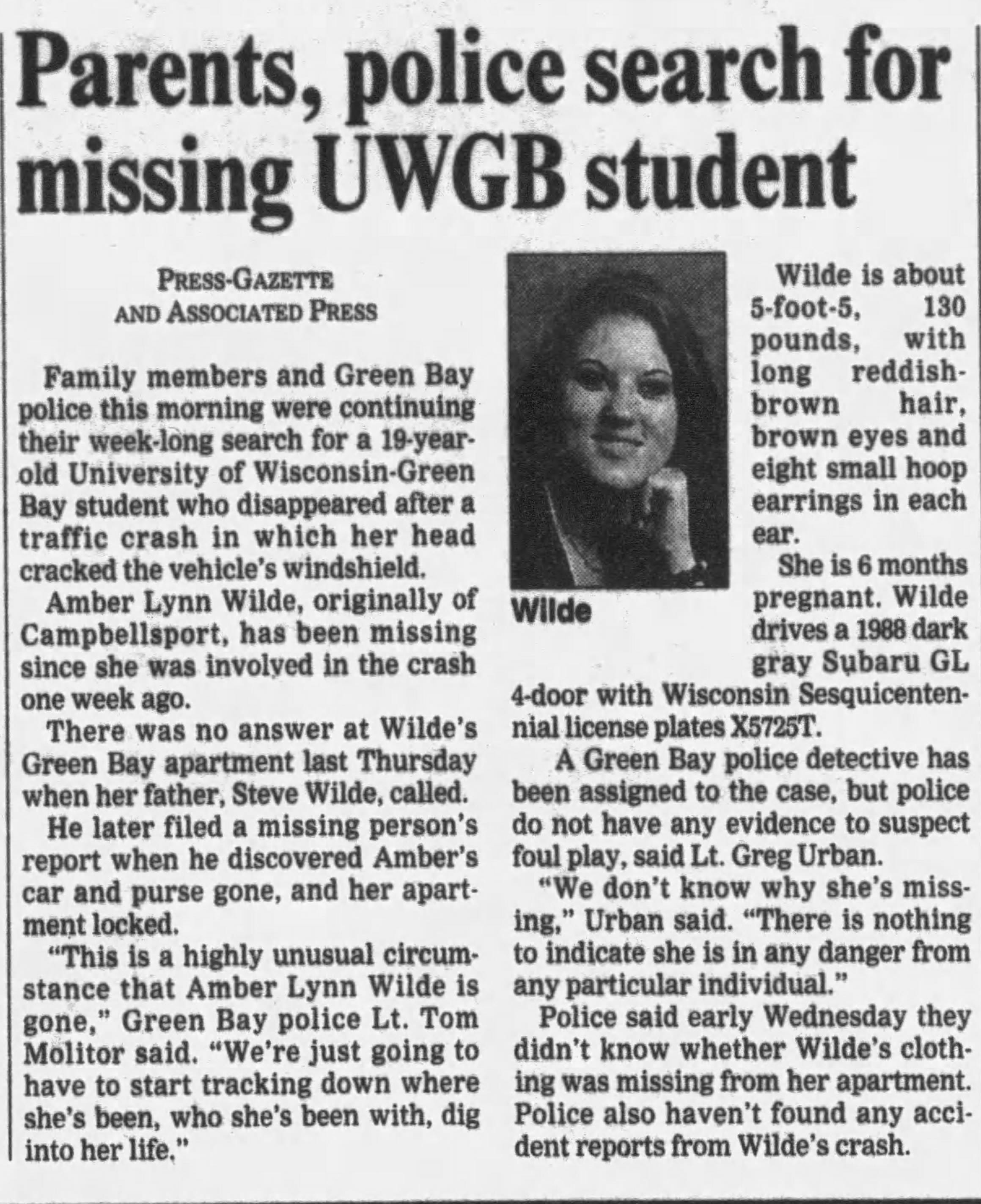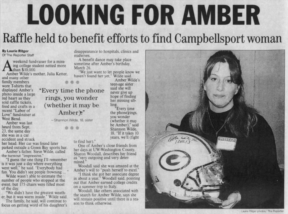 The Wilde family began running frequent missing-person ads in local newspapers and established the Find Amber Lynn Wilde Fund to raise additional resources for her ongoing search.