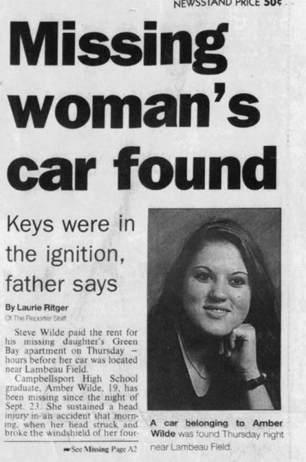 Steve had just finished paying Amber’s rent for the month when he received word from Green Bay police that her car had finally been located. When he joined police at the vehicle, Steve could see that the keys were still in the ignition.