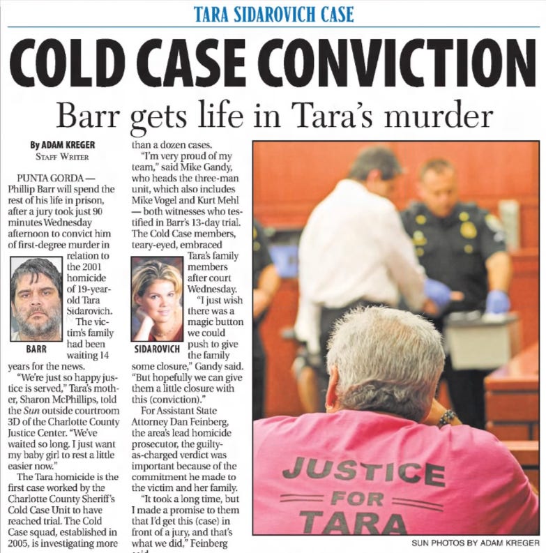 After a number of delays and legal motions, Barr finally went to trial in October 2015—14 years after Tara’s disappearance. It was the first murder trial in Charlotte County in two years, and the first trial brought by the county’s cold case unit created ten years earlier.